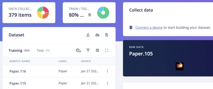 We have uploaded 379 images to Edge Impulse Studio to create a balanced dataset.