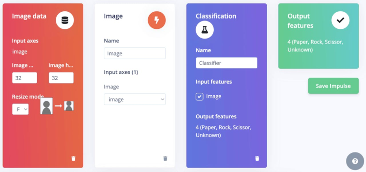 - Go to the Impulse Design section, then select the Create Impulse page. We have opted for a 32×32 pixel image size in the “Image Data” form fields.