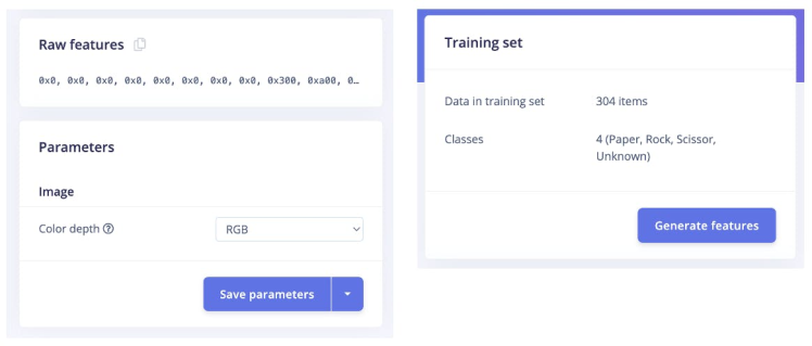 On the Image page, choose RGB as color depth and click on the Save parameters button. The page will be redirected to the Generate Features page.