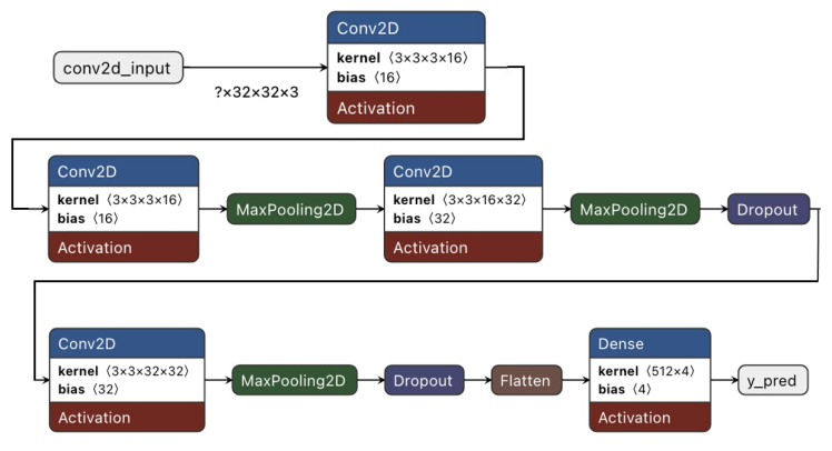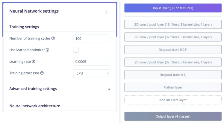 On the Classifier page, we can define our model. We have developed a custom Convolutional Neural Network (CNN).