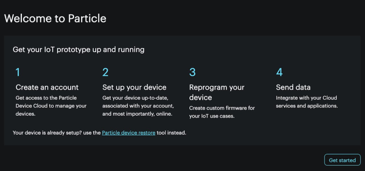 Before starting to run the application make sure to set up your Photon 2. Please create a new account at https://login.particle.io/signup, then visit https://setup.particle.io/ and follow the instructions.
