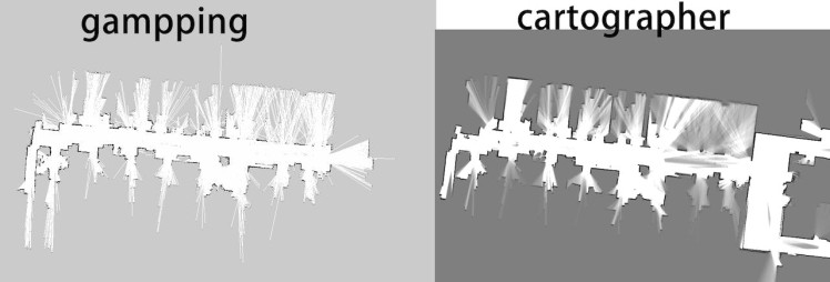 Gmapping can build indoor maps in real-time, requiring less computation and higher accuracy in building small scene maps. Compared with Cartographer when building a small scene map, Gmapping does not require too many particles and has no loopback detection, so the amount of calculation is less than that of Cartographer, and the accuracy is not much worse. When building a small scene map, compared with Cartographer, Gmapping is not only fast but also can build high-precision maps, and the number of particles required for Gmapping to expand the map can easily burst the memory. The latter can solve the problem of map expansion, and the effect of mapping can be excellent (the above picture is in the same terrain).