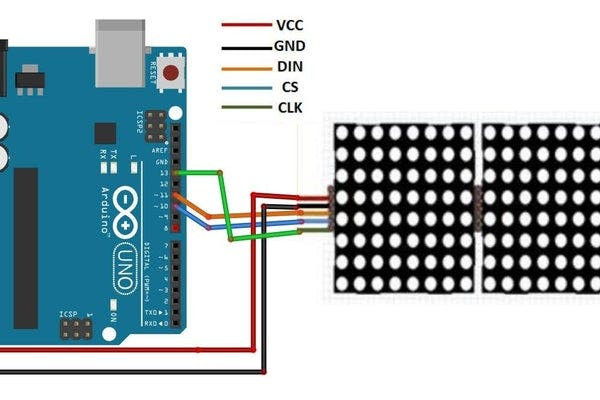- Connect LED Matrix pin[VCC] to Arduino pin[5V]