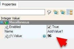 - Select "AddValue1" and in the properties window set "Value" to 96