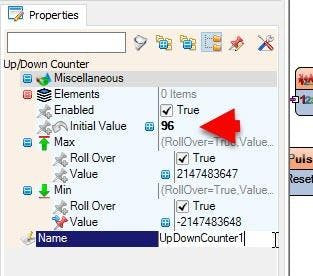 - Select "UpDownCounter1" and in the properties window set "Initial Value" to 85
