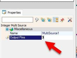 - Select "MultiSource1" and in the properties window set "Output Pins" to 3