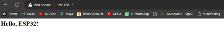 Congratulations! You’ve just implemented a simple web server on the ESP32. You can now access this server from any device connected to the same Wi-Fi network by entering the ESP32’s IP address into a web browser. This is just the beginning - you can expand this server to control GPIO pins, read sensor data, and much more. The possibilities are endless.