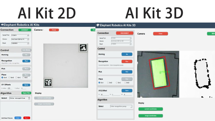 The Artificial Intelligence 3D Kit is an entry-level package for robotic arm applications in artificial intelligence and machine vision. The kit utilizes four recognition algorithms, including color recognition, shape recognition, YOLOv8, etc. It is compatible with a visualized operating interface and addresses the limitations of 2D cameras requiring marker positioning by using a 3D camera. The open-source code is based on the Python platform, allowing for mechanical arm control through development software.