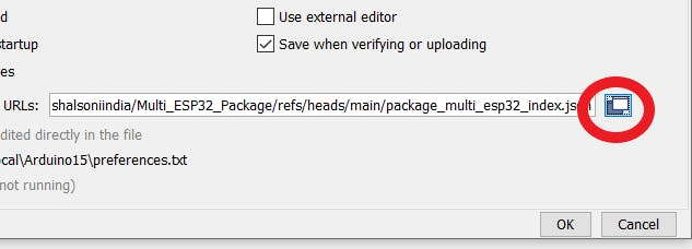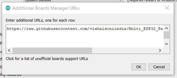 1. Add link of BoardAdd the Multiple ESP32 Board Package URL to Arduino IDE Preferences