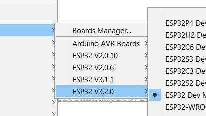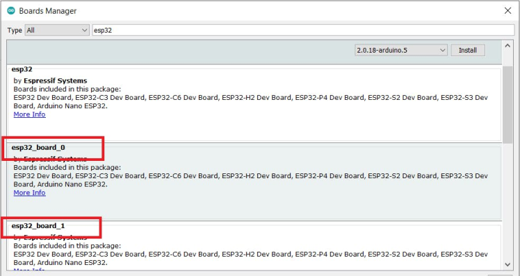 You should now see all the ESP32 board entries listed with their version numbers, as renamed earlier.