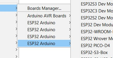 If you see ESP32 boards by Espressif Systems listed (as shown in the image), then everything is set up correctly.