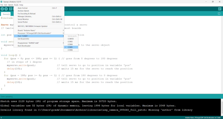 - Open Arduino IDE → Go to Sketch > Include Library > Servo.