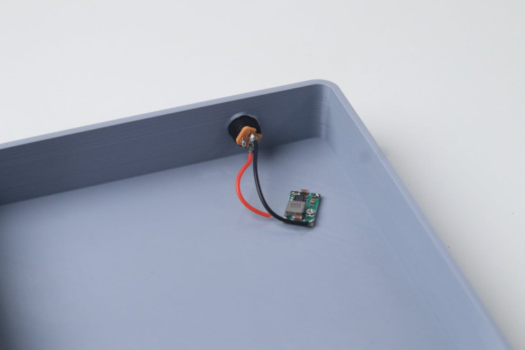 A 12V 3A power supply powers the entire project setup. So we need to power the STM32 Nucleo, XIAO and the Notecard using this power supply. Upon inspecting the data sheets of these elements I concluded that 5V is the best for powering these elements. I decided to use a Mini 360 buck converter for stepping down the 12V voltage to the 5V one so I can power every element with this same power supply.