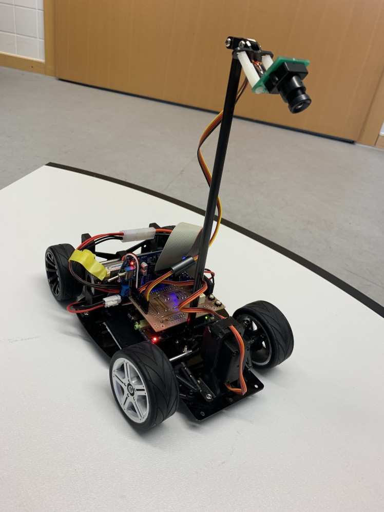 Using the new DFRobot ROB0165 chassis, the NXP FRDM-K66f and the Pixy2 camera, I was able to build a car within a week, which was able to drive on the road, but not fast at all. This was mainly caused by the steering algorithm.