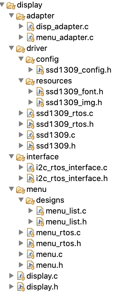 Hierarchical software help me to switch or edit components quick and fail safe. The I2C interface I use for the display is a good example: I use the SDK I2C driver, enclose it with RTOS necessary code and adapt that to the display driver. Like this, the display driver can be used with any interface, even with baremetal.