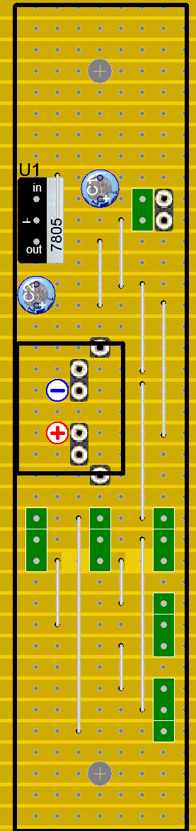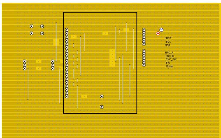Another PCB with line grid contains the display, rotary encoder, push button and a buzzer. This simply arranges the components in right place like they will be on the custom mainboard PCB.