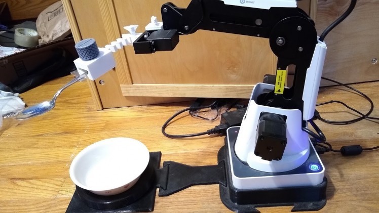 Now it's ready to have a spoon in the utensil holder and a bowl on the bowl disc and it should like the picture at the top except the arm won't stay up like that while powered off.