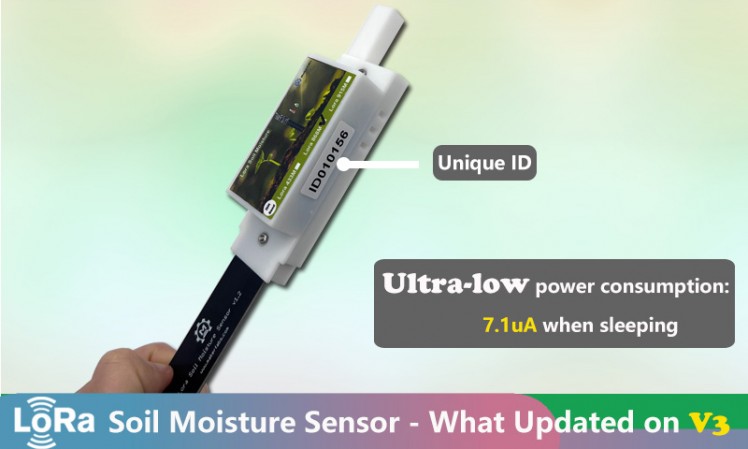 This Lora soil moisture sensor V3 is the upgrade version of the V1 and V2 version. Compared to previous versions, the V3 has the following great updates: