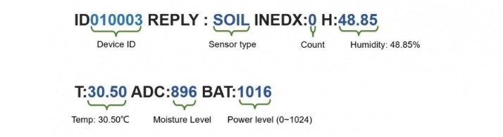 With the unique ID, users can create a remote Lora receiver to receive this info and identify which one is necessary to take action, such as alarming/ watering.