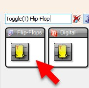 - Connect "Button1" pin [Out] to "TFlipFlop1" pin [Clock]