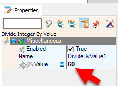 - Select "DivideByValue1" and in the properties window set "Value" to 60