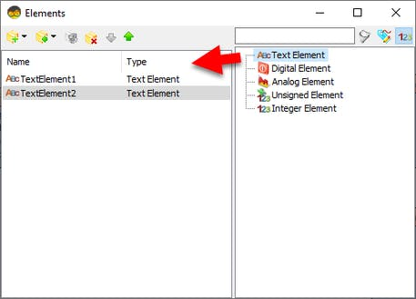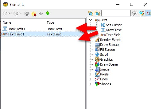 - In the Elements Dialog drag 2X "Text Field" from the right side to the left