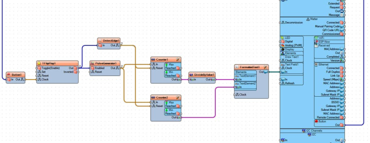 - Connect "PulseGenerator1" pin [Out] to "Counter2" pin [In]