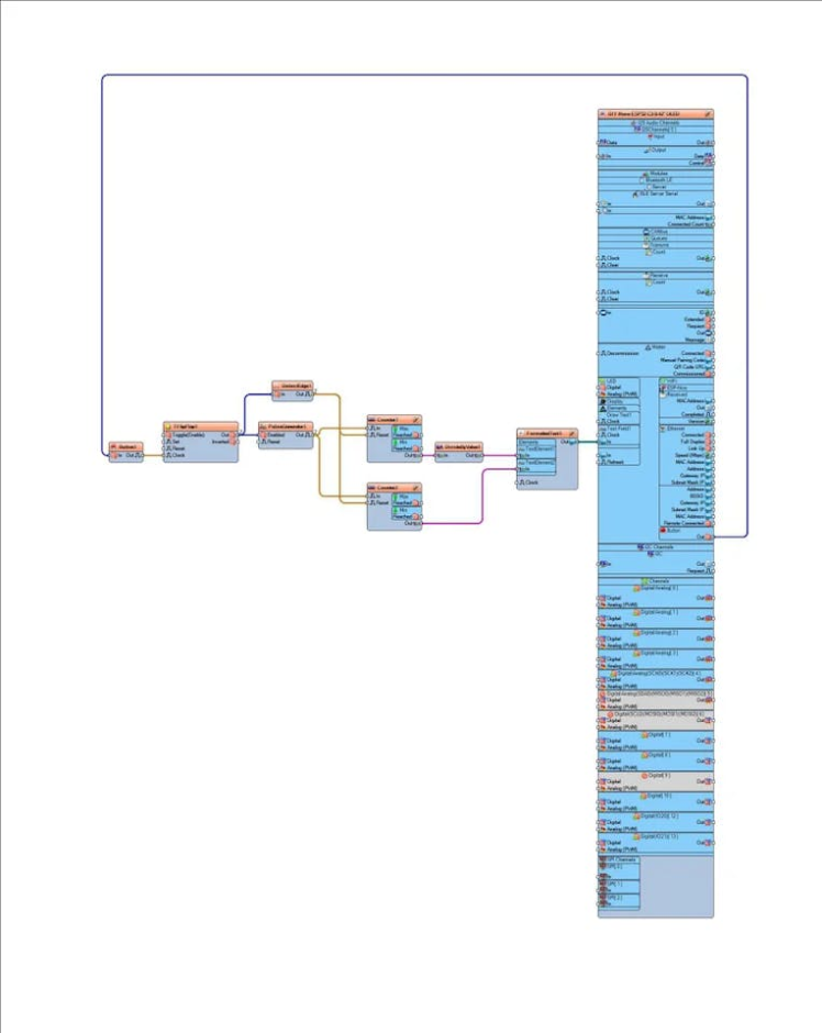 - Connect "TFlipFlop1" pin [Out] to "PulseGenerator1" pin [Enabled]
