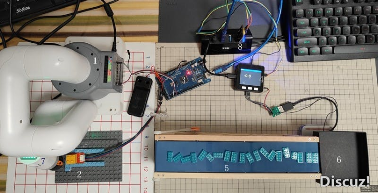 (2) Connect myCobot to the conveyor belt, and install a simple button at the end of myCobot, which can trigger the power supply of the conveyor belt when the arm is lowered.