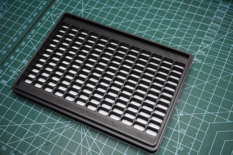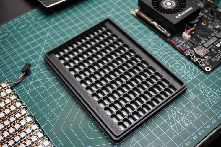 - For the matrix cover, I started with white PLA for the diffuser and then switched to matte black once the printer reached the grid section.