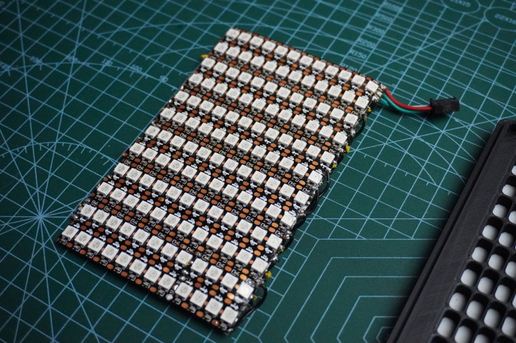 - Alternatively, I created a prototype using WS2812B 144 LED strips. I cut them into sections of 12 LEDs each and assembled them into a matrix by carefully soldering them onto a cardboard base.