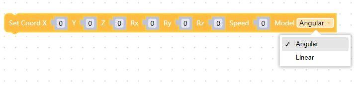 Step2: Once we have the angles or coordinates, we will usethe Set Angle / Set Coord function to move the arm. fill in the parameters in the left fields.
