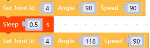 For example, as for myCobot-Pi in this case, the initial angle of joint 4 is 90. When we change it to 118, the stick can hit the instrument to produce a sound.