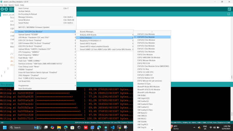 - Ensure the FireBeetle is selected as the target board in Arduino IDE and the correct COM port is chosen.