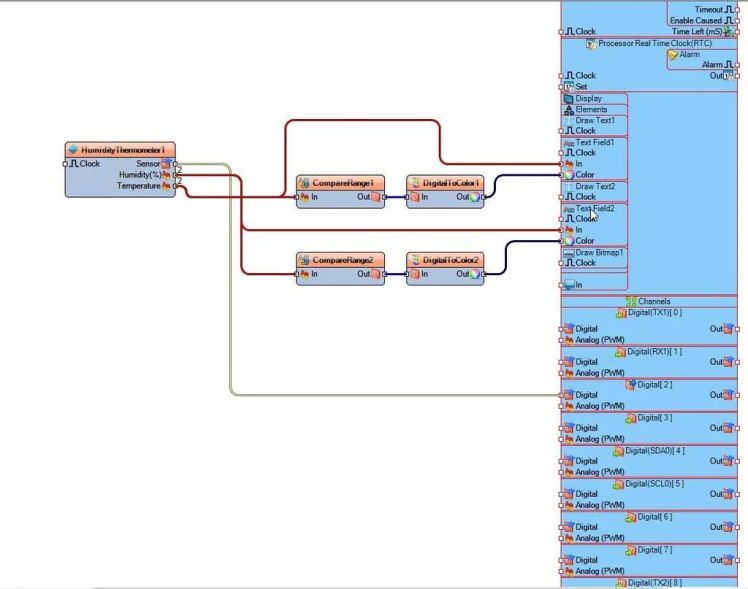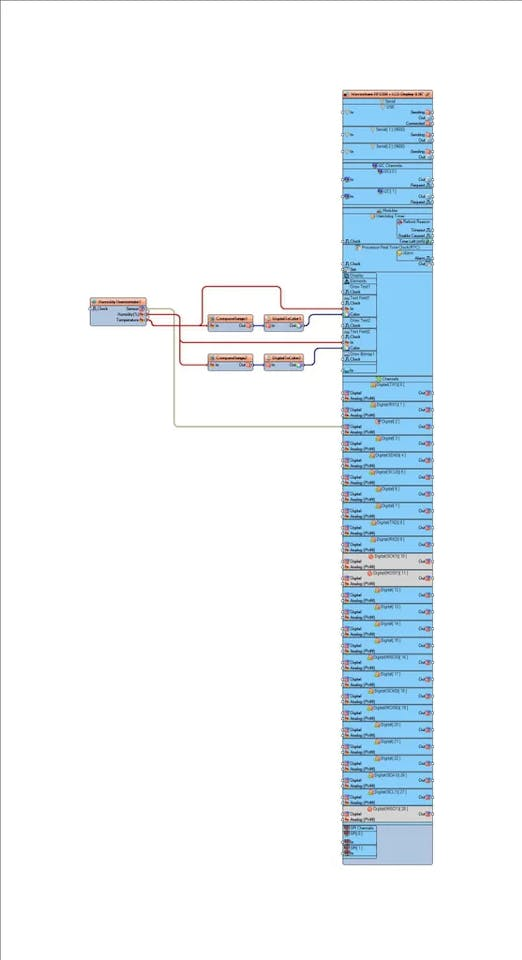 - Connect "HumidityThermometer1" pin [Temperature] to "CompareRange1" pin [In]