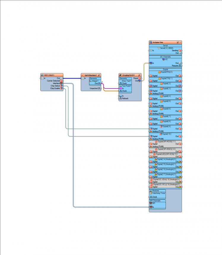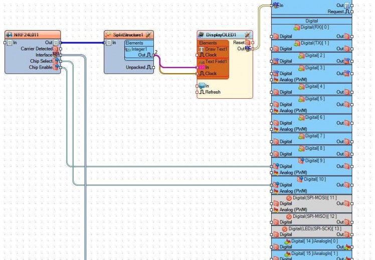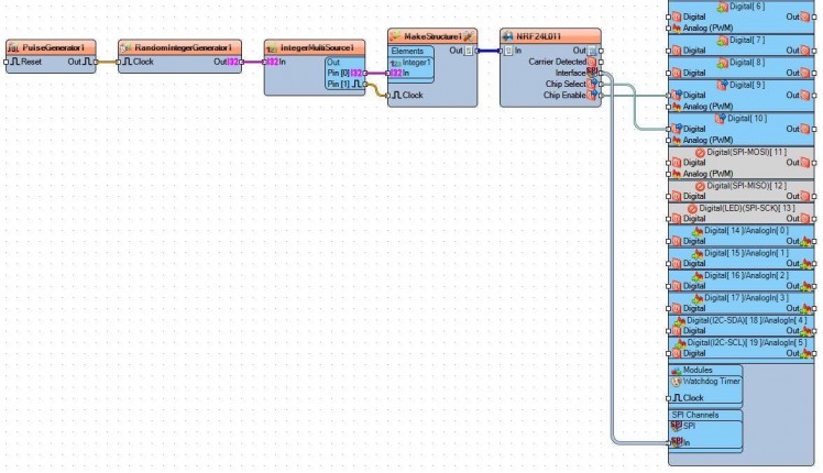 - Connect "MakeStructure1" pin [Out] to "NRF24L011" pin [In]