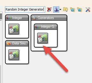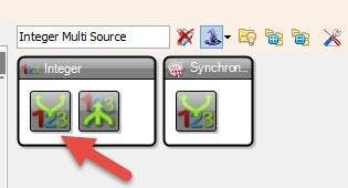 - Connect "RandomIntegerGenerator1" pin[Out] to "IntegerMultiSource1" pin [In]