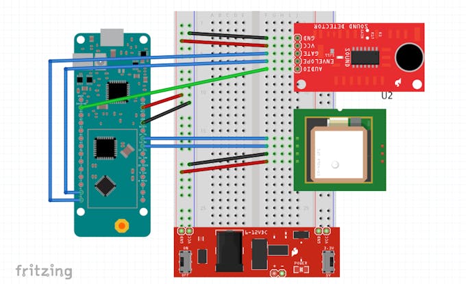This is a little tricky as we will be using the breadboard power supply. This means that we have to power the micro controller with the power. Below are the Fritzing schematics of the circuit. A downloadable version is attached at the end of the project.