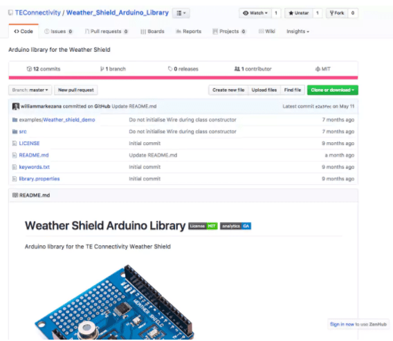 Figure 7: TE Connectivity provides all the needed software libraries on their GitHub repository.