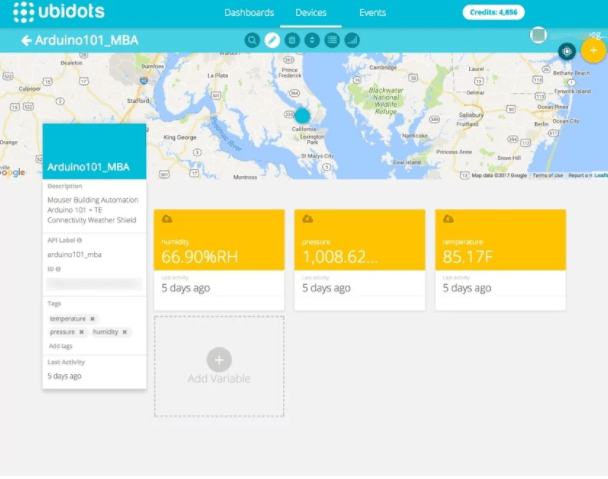Figure 8: Ubidots provides for a simple yet powerful and inexpensive IoT backend.