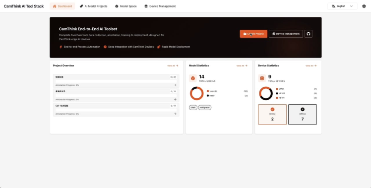 - Camthink AI Tool Stack, an end-to-end AI toolset covering the entire workflow from data collection, annotation, training, quantization, to deployment.