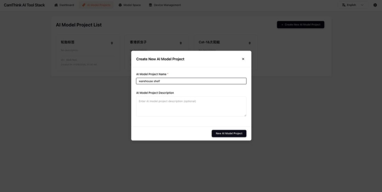 Click Create New AI Model Project, Input the name and description: