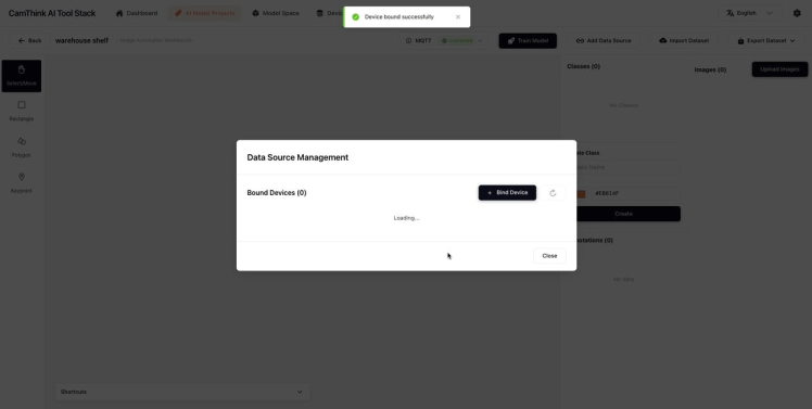 Open this project and bind the device for image collection, you will need to create this device firstly.