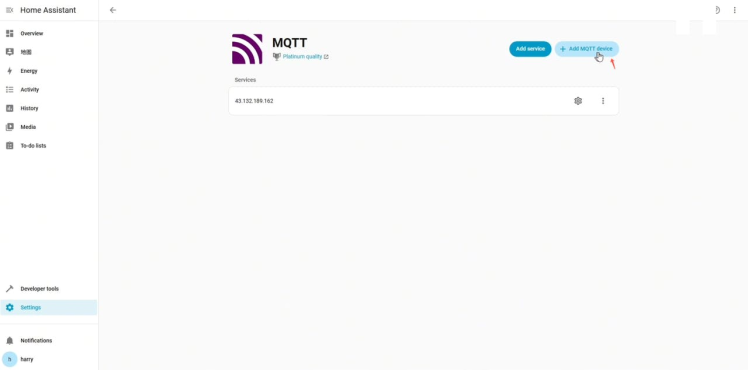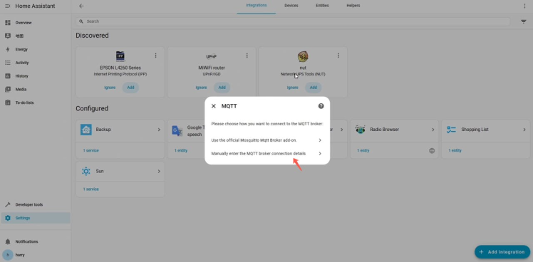 Open the 'Devices & Services' to install the MQTT integration.