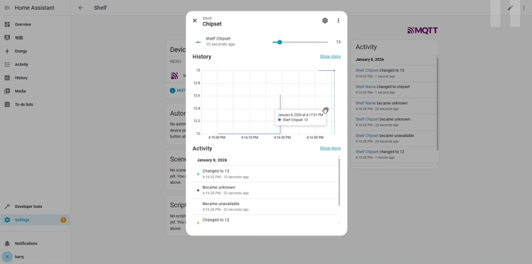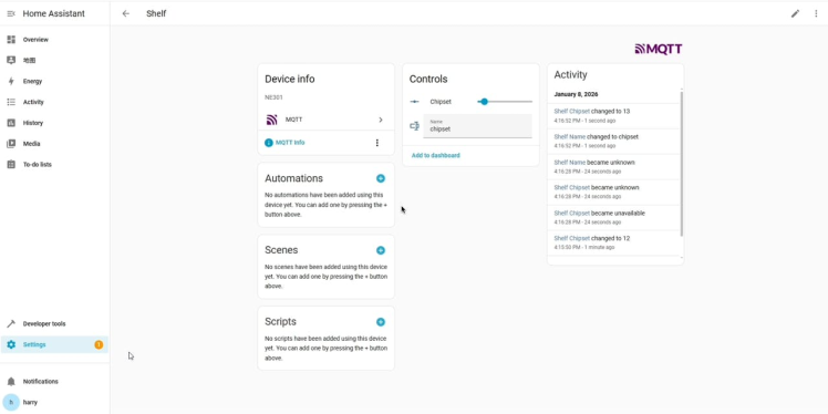 To make the data values more valuable for customers, we choose HomeAssistant for integration and visualization. You can also connect it to other 3rd-party platforms.