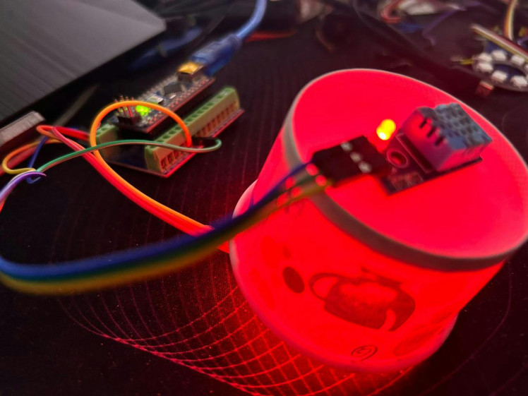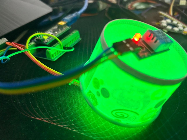After programming the Arduino Nano, it’s time to test the system. Power up the Arduino and observe the color of the Neo Pixel ring. Try changing the temperature around the DHT11 sensor (for example, by blowing hot or cold air onto the sensor) and see if the color of the Neo Pixel ring changes accordingly.