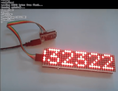 59. disp = require("MAX7219").connect(spi, B4, 4);