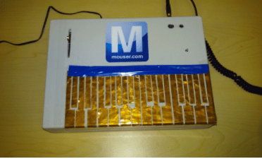 The desktop synthesizer uses an Intel Arduino 101 to turn a small box and some conductive strips into a musical instrument.