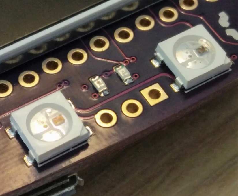 - 2 WS2812B RGB LEDs (aka Neopixels) with a 3-pin header to connect your own (And this year they’re the right way up!)