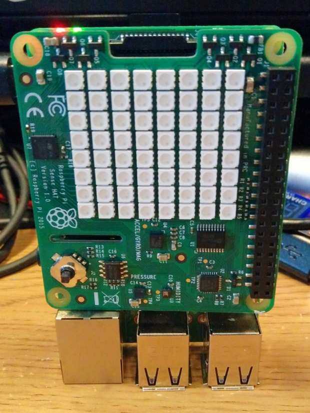 At the heart of the project is the Sense HAT, an add-on board that offers an 8×8 RGB LED grid, a five-button joystick and includes the following sensors: